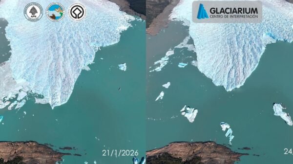 Imágenes tomadas con poco más de un mes de diferencia evidencian un marcado retroceso del Glaciar Perito Moreno. La primera fotografía fue registrada el...