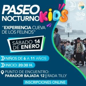 Mientras que a las 20:30 los niños y niñas de 6 a 11 años podrán divertirse en un paseo nocturno y vivir la «experiencia cueva de los felinos». El punto de encuentro será en la bajada de 12 de la playa y se pueden anotar en este link 👉 https://forms.gle/FkiP4M6yDcsAEUw18