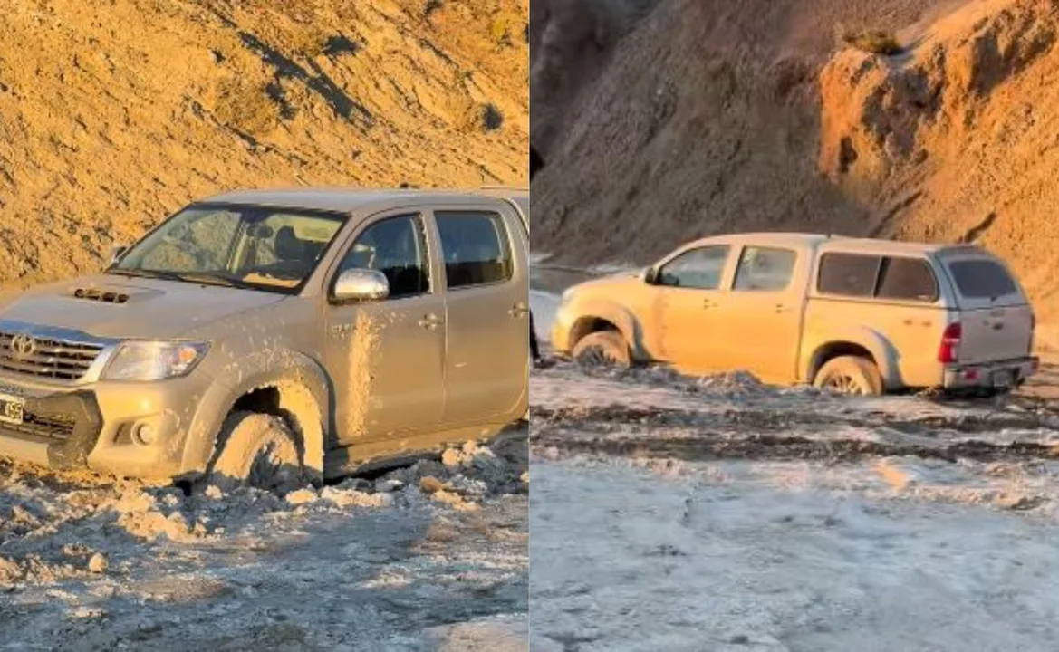 El vehículo, una Toyota Hilux beige con cúpula, fue encontrado encajado en el barro, cerrado y sin las llaves puestas. “Necesitamos sacar la camioneta, no tenemos llave; si alguien sabe cómo hacerlo, por favor que se comunique”, escribió la mujer en redes, junto a un video que muestra el rodado varado en medio del terreno árido.