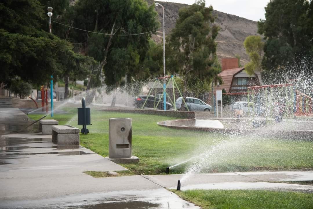 El municipio de Rada Tilly calcula que cerca de 40 mil m2 de áreas verdes de la ciudad se riegan con agua tratada.