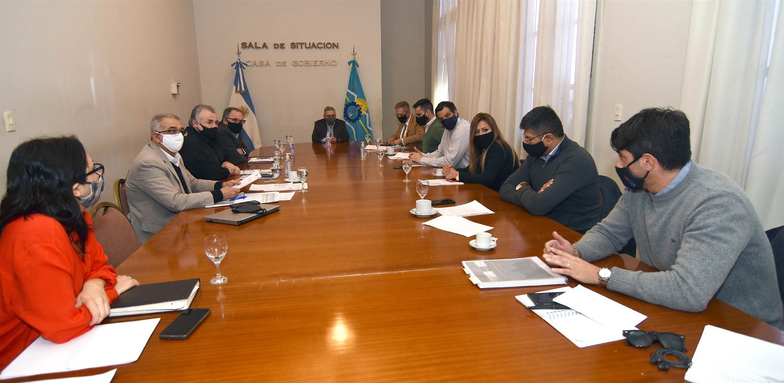 El encuentro, que se realizó en Sala de Situación de Casa de Gobierno, fue encabezado por el secretario General de Gobierno, Javier Touriñan, y estuvieron presentes los ministros de Economía, Oscar Antonena; de Agricultura, Ganadería, Industria y Comercio, Leandro Cavaco y de Ambiente, Eduardo Arzani; los secretarios de Pesca, Adrián Awstin, y de Modernización del Estado, Sergio De Cicco; el subsecretario de Pesca, Gabriel Aguilar; los presidentes de la Administración de Vialidad Provincial (AVP), Cynthia Gelvez, y del Instituto Provincial del Agua (IPA), Gerardo Bulacios; la coordinadora Ejecutiva de la UEP dependiente del Ministerio de Economía, Florencia Gongora; entre otros.