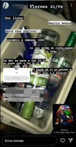 La organizadora y dueña de la vivienda era una mujer de 59 años quién utilizó la red social Instagram para promocionar la fiesta ilegal: cobraba $200 más un bebida alcohólica o también estaba la opción de ir sin alcohol pero el ingreso tenía un costo de $300.