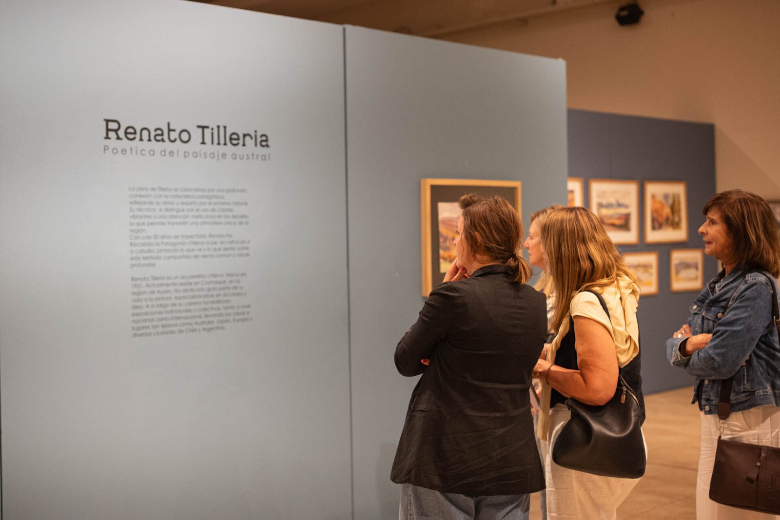 Además, el Centro Cultural alberga la muestra del artista chileno Renato Tillería, acuarelista nacido en 1951 y radicado en Coyhaique, región de Aysén. Tillería ha desarrollado una extensa trayectoria con exposiciones en Chile, Argentina y otros países, y su obra se caracteriza por una profunda conexión con la naturaleza patagónica, destacándose por el uso de colores vibrantes y el cuidado en los detalles.