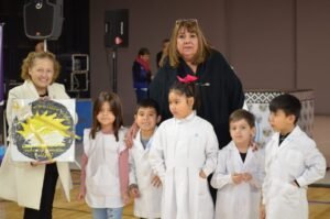 Durante la ceremonia se realizó un gran reconocimiento a la primera directora de la institución y ex diputada provincial, Nelly Lagoria, quien agradeció al gobernador, Mariano Arcioni, por el «acompañamiento hacia la comunidad educativa».