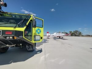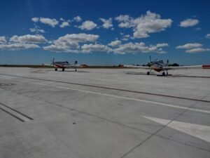 En horas de este mediodía, los aviones estaban listos para salir desde el aeropuerto de Trelew.