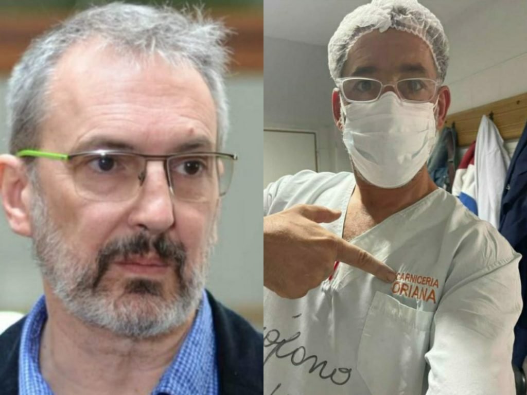 Esta semana, el Dr. Gustavo Parera publicó en sus redes sociales, donde ironizó diciendo “lindos ambos del Hospital Regional”. En la imagen que acompaña el posteo se lo ve vestido para realizar sus tareas y señalando la inscripción que reza “Carnicería Oriana”, evidenciando la falta de uniformes indicados para el personal.