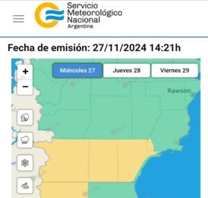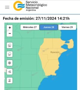 Según datos oficiales del Servicio Meteorológico Nacional (SMN), algunas zonas de la provincia del Chubut podrían tener episodios de lluvia intensa entre hoy miércoles 27 y mañana jueves 28 de noviembre.