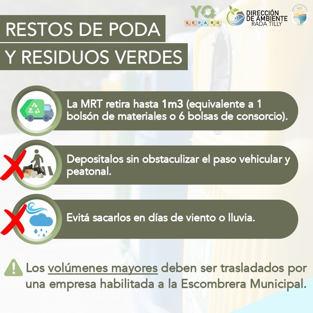 En agosto continúan las tareas de poda, y desde el municipio de Rada Tilly ofrecen el servicio de recolección de residuos verdes para pequeños volúmenes.