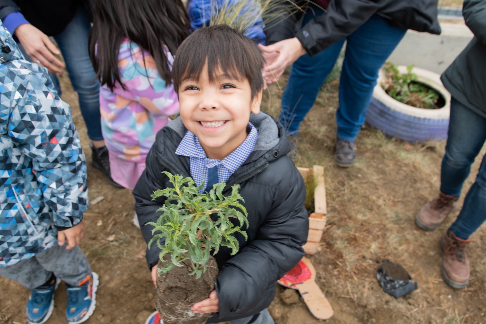 La Dirección de Medio Ambiente de la Municipalidad de Rada Tilly colabora con la parquización de especies nativas en la Escuela de Nivel Inicial N° 4402.