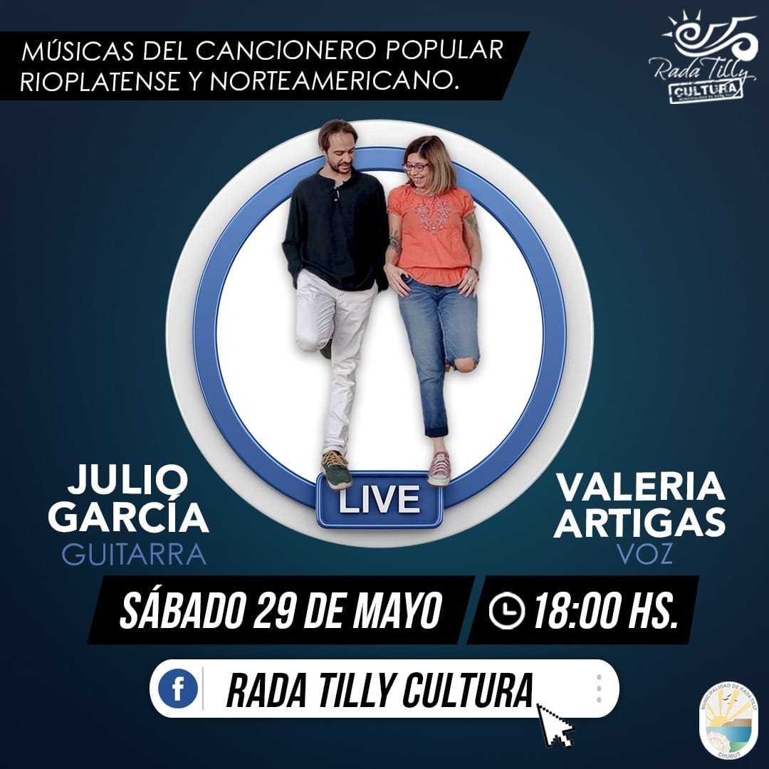 Esta tarde, desde las 18 horas, la Secretaría de Cultura de Rada Tilly presentará a los músicos Valeria Artigas y Julio García con un show musical que recorrerá el cancionero latinoamericano.