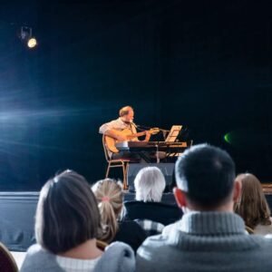 Pasadas las 21hs, el público disfrutó de un repertorio lleno de energía y emoción, donde Carlos demostró su talento como pianista, cantautor y compositor.
