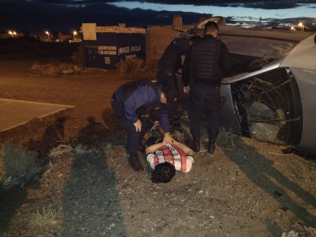 En horas de esta mañana un grupo de tres ladrones robaron un kiosco de Km 8 y al escapar de la policía arriba de un vehículo, terminaron volcando en una curva.