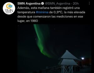 «Además, esta mañana -en referencia a la mañana del viernes- también registró una temperatura mínima de 0,9°C, la más elevada desde que comenzaron las mediciones en ese lugar, en 1980».