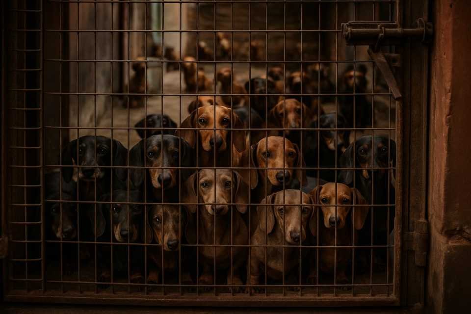 En el lugar se encontraron 46 perros de la raza Dachshund (conocidos como “salchichas”), además de 7 bulldogs francés, un dogo y un labrador, todos en condiciones de encierro inadecuadas.