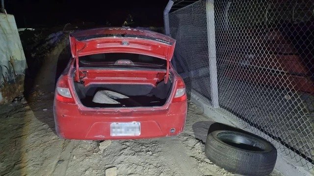 Dentro del baúl del automóvil abandonado, las autoridades encontraron una cubierta de auxilio con llantas de chapa, mientras que en el suelo se observaba otra cubierta de auxilio con llantas de aleación originales de fábrica en detalles color plata y negro.