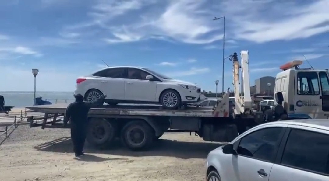 Tras el olvido por parte de las autoridades de cerrar la costanera, para evitar que estacionaran vehículos en el lugar, el municipio trabaja con grúas para sacar los autos.