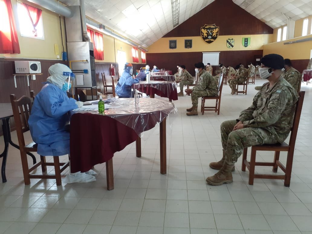 Al respecto, Villibar explicó: “Nos encontramos con que el batallón tiene alrededor de 240 personas que son personal activo y alrededor de 50 que son personal civil que está a prueba para ver si luego serán soldados voluntarios. Nosotros realizamos entrevistas en el triage y el que tenía criterio se realizaba hisopado; primero el test rápido y si daba negativo con alta sospecha negativa avanzamos al PCR”.