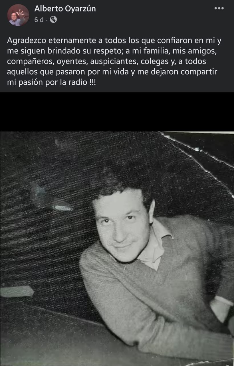 El icónico locutor Beto Oyarzún murió este viernes en el Hospital Alvear tras estar internado algunos días.