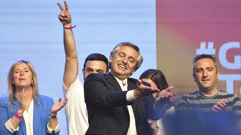 «Volvimos», era la consigna que aquel domingo de octubre dominaba los mensajes de los dirigentes y militantes del FdT que celebraban no solo el triunfo en las urnas, sino haber logrado la tan declamada unidad del peronismo y otros partidos del campo popular y así haber vencido a Juntos por el Cambio, la alianza entre el PRO, la UCR y la Coalición Cívica, que buscaba la reelección de Mauricio Macri.