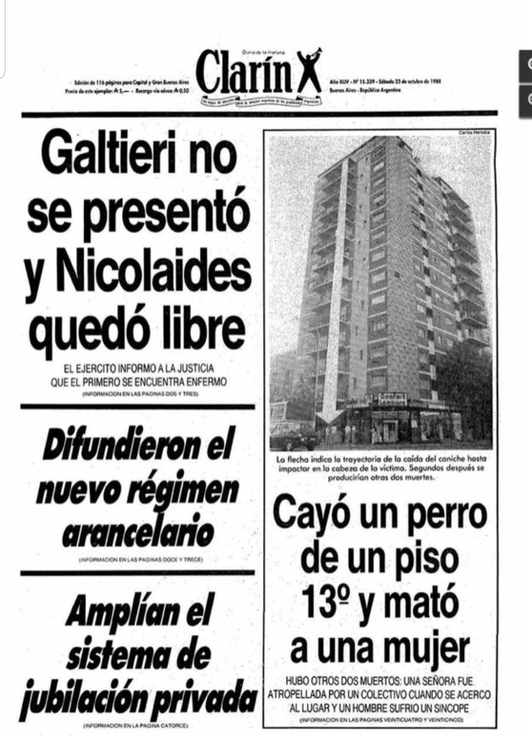 Fue un 21 de Octubre de 1988, y fue tapa de Clarín al día siguiente. Mucho antes de que la grieta comenzara y con el gobierno radical de Alfonsin sin dar pasos firmes en la economía.