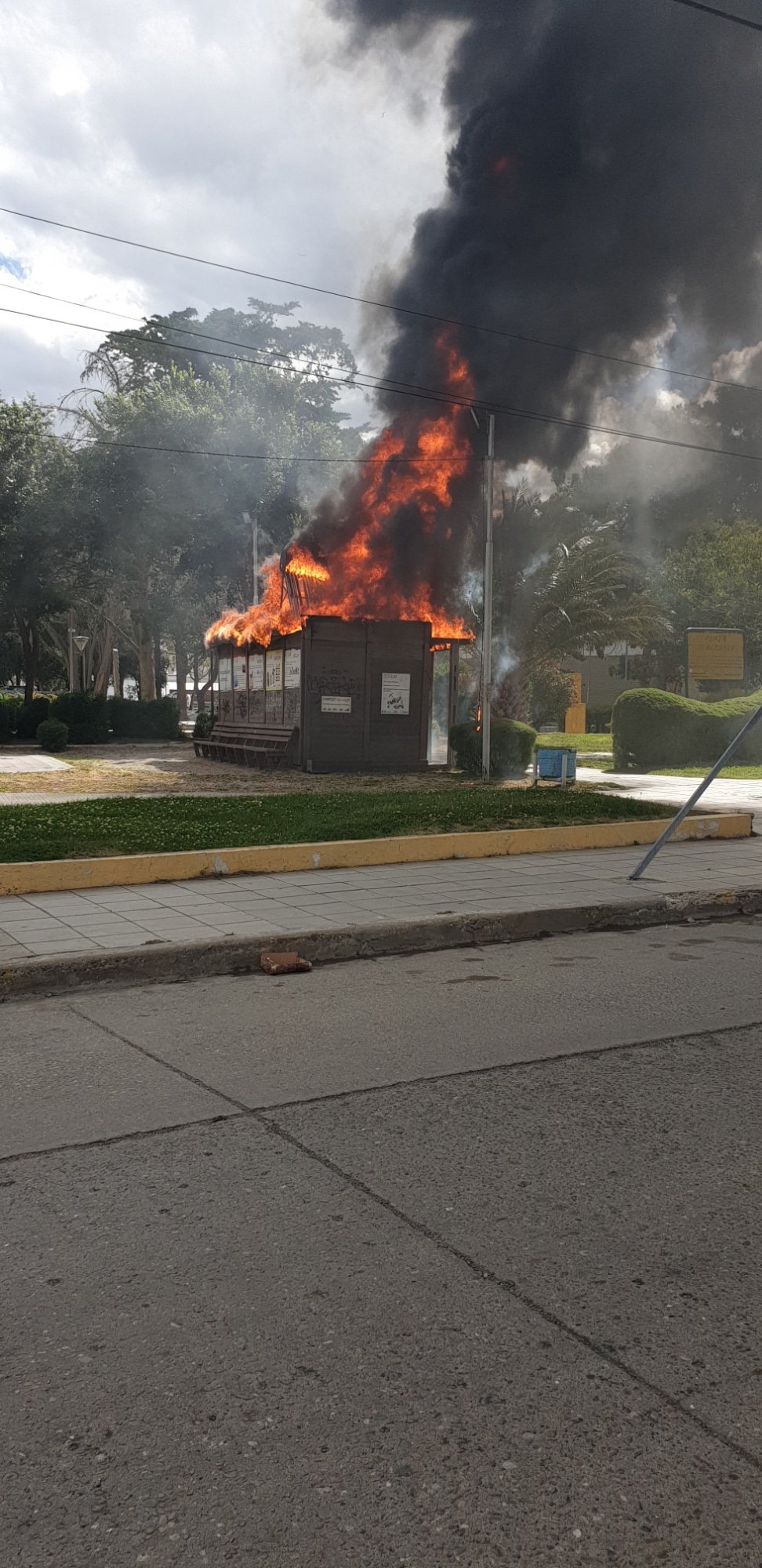 Personal municipal reporta que a las 16:30hs. El puesto de reciclaje municipal instalado en la costanera de Comodoro Rivadavia sufrió un incendio.