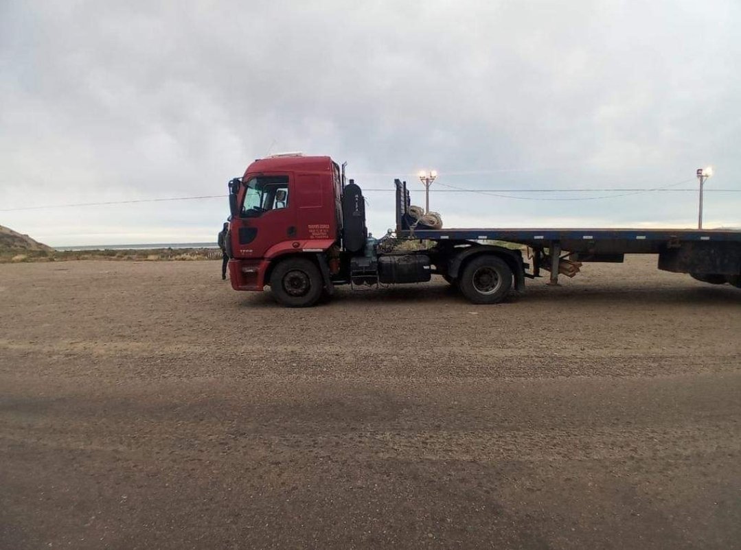 Según publica el portal InfoCaleta, el camión se encuentra secuestrado en Ramón Santos, en el límite entre Chubut y Santa Cruz.