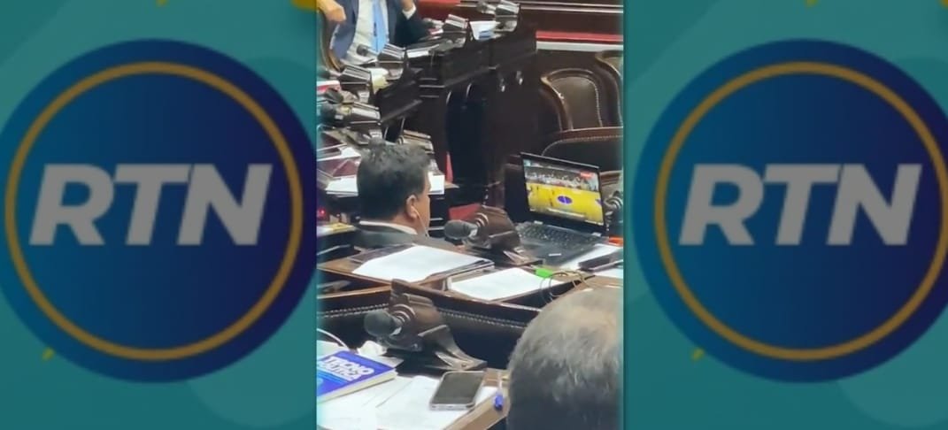 El diputado del Frente de Todos no disimuló ni un poco. Apoyó su notebook en la banca y vio el encuentro a pantalla completa, según se puede observar en un video que se viralizó en las redes.