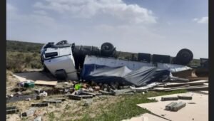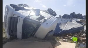 «Venía viajando desde Misiones con destino a la localidad de Caleta Olivia, Santa Cruz. Llevaba aluminio. Volcó, perdió el dominio del camión por el viento«, aseguró.