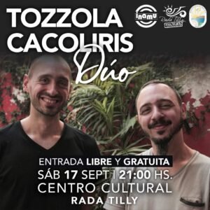 La Secretaría de Cultura de Rada Tilly invita a disfrutar este fin de semana de un concierto de música junto al dúo “Tozzola-Cacoliris”