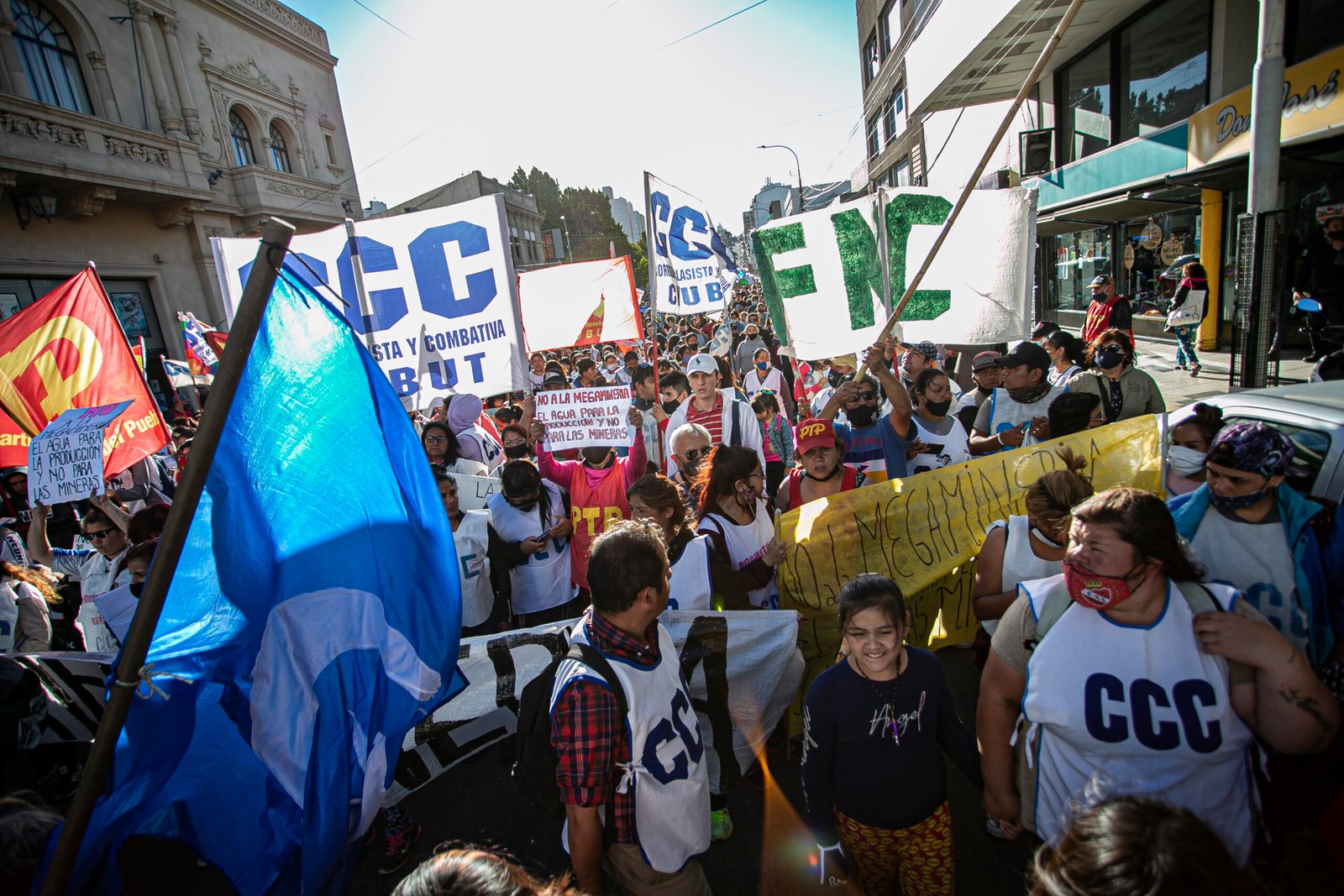 Bajo el lema «El agua no se vende» y «No es No» más de 5.000 comodorenses caminaron por la calle San Martín con carteles y pancartas que identificaban a todos en una sola consigna, un futuro con agua y tierra limpia, un futuro para los que vienen. El derrotero de la marcha continuó hacia la Escribanía de Yrigoyen y luego hacia el Concejo Deliberante de Comodoro.