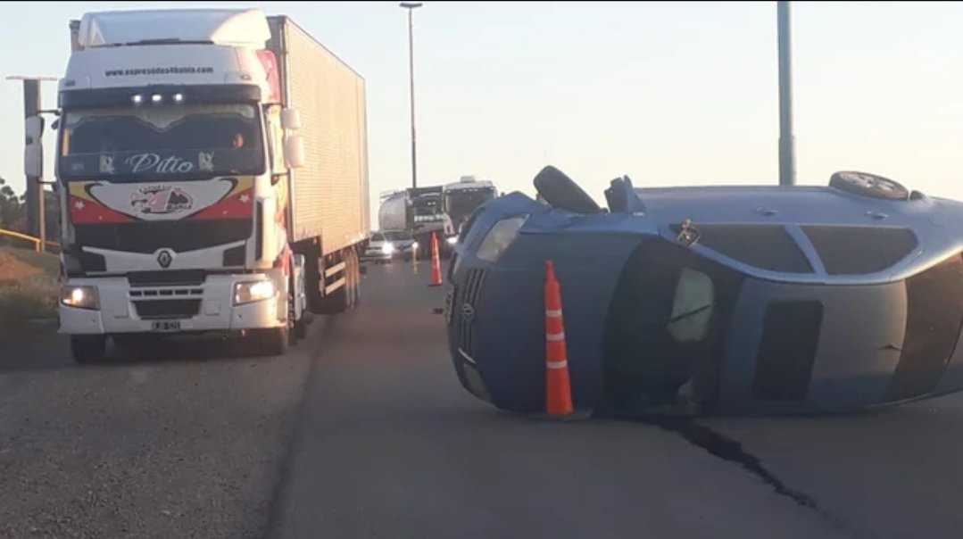 Afortunadamente no hubo heridos pese a que el vehículo Volkswagen Bora terminó volcado sobre uno de los carriles.