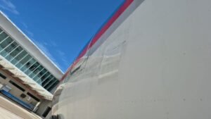 Un vuelo de Aerolíneas Argentinas proveniente de Buenos Aires con destino a Córdoba quedó fuera de servicio tras ser golpeado por una manga telescópica en el Aeropuerto de Comodoro Rivadavia.