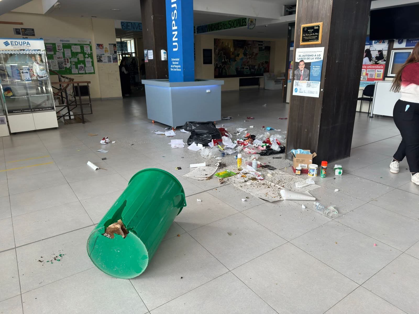 Un episodio de violencia se registró este jueves en la Universidad Nacional de la Patagonia San Juan Bosco, cuando integrantes de La Federación Nacional de Docentes Universitarios (CONADU) realizaban una manifestación en el hall de ingreso y un estudiante de la Facultad de Ciencias Naturales arrojó un tacho de basura sobre ellos desde el primer piso del edificio.