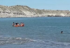 Afortunadamente con un kayak, el can pudo regresar sano y salvo a la costa para seguir disfrutando de una jornada de playa en la ciudad patagónica.