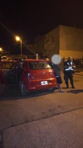 Cerca de la medianoche personal policial de la unidad operativa de zona norte realizó un control vehicular al Volkswagen Fox que estuvo involucrado en el suceso anterior. Allí se secuestraron cuatro cartucho de calibre 16 por lo que ambos ocupantes identificados como A. N. M. de 27 años y A. G. N. de 24 años fueron detenidos.