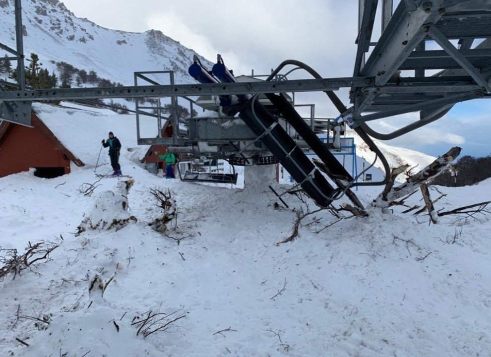 La avalancha destrozó una silla cuádruple que fue arrastrada por la nieve. Según los especialistas, después de la intensa nieve se produjo una fuerte lluvia que causó el desprendimiento del bloque de nieve.
