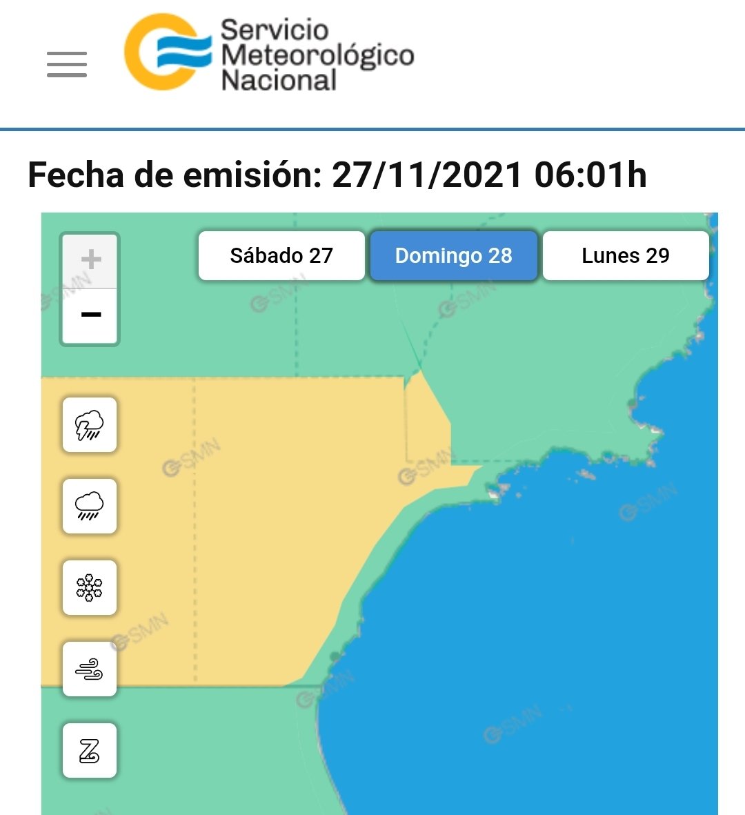 Captura web SMN.