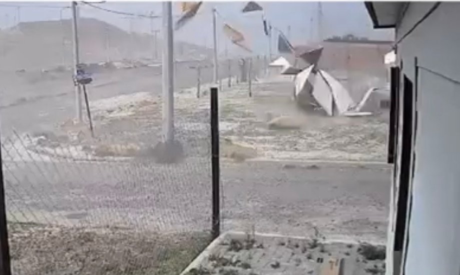 Las ráfagas que superaron los 100 km/h durante el mediodía de este miércoles provocaron la voladura total de una construcción de un domo en la zona de kilómetro 5, en la intersección de las calles Los Delfines y Los Gorriones.