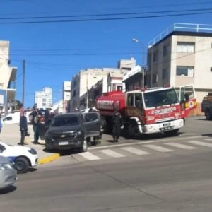 Una de las dotaciones mientras se dirigía hacia el incendio terminó chocando contra un vehículo en Av. Rivadavia. A pesar de tratarse de un choque leve, al lugar llegó una ambulancia para atender a una mujer con niños que iban a bordo del vehículo.