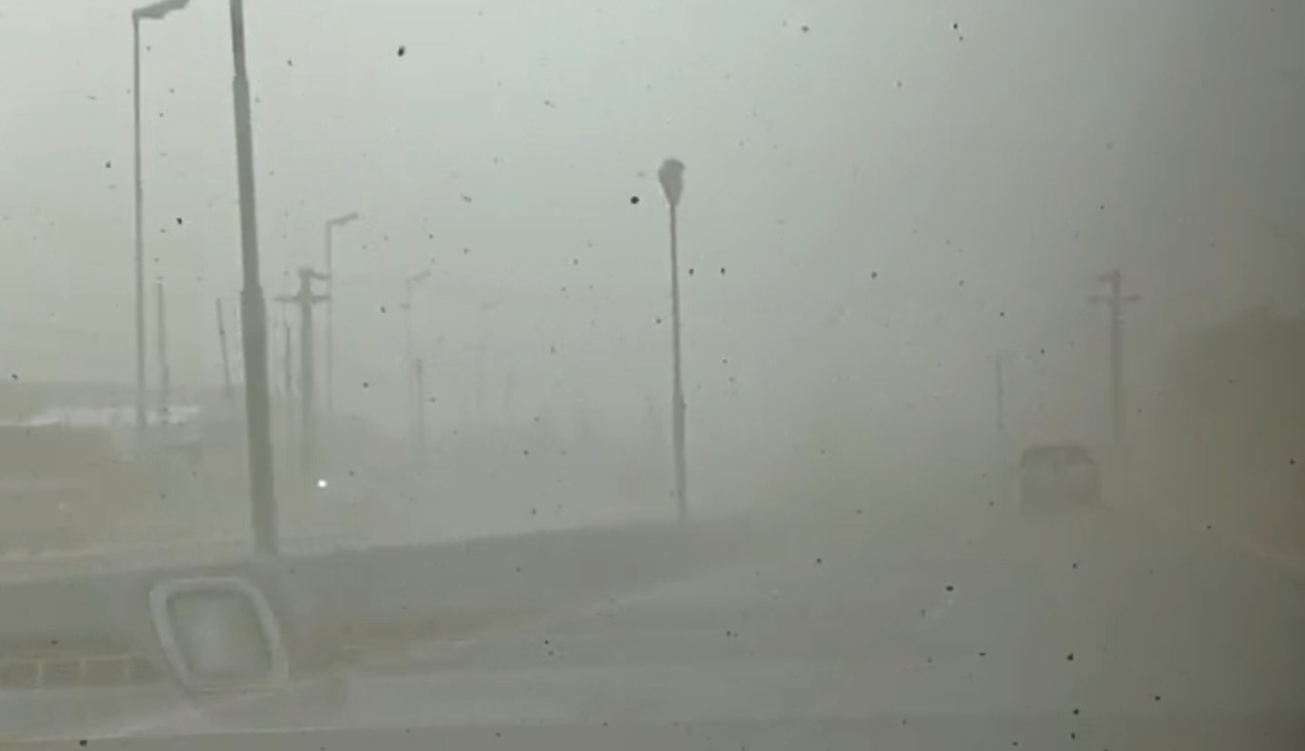 Con ráfagas de viento cercana a los 120 km/h en la zona urbana de Comodoro Rivadavia y Rada Tilly, la visibilidad se ve altamente afectada por el polvo que es levantado por el Eolo.
