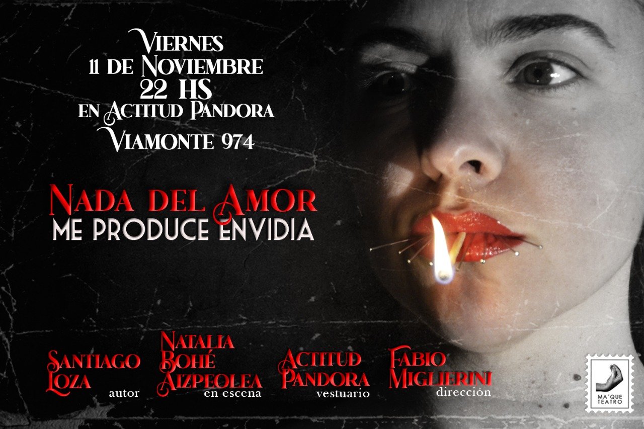 De la mano de Ma’ Que Teatro, la pieza teatral está dirigida por Fabio Miglierini, tiene en escena a Natalia Bohé Aizpeolea, Actitud Pandora en vestuario y como autor a Santiago Loza.