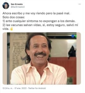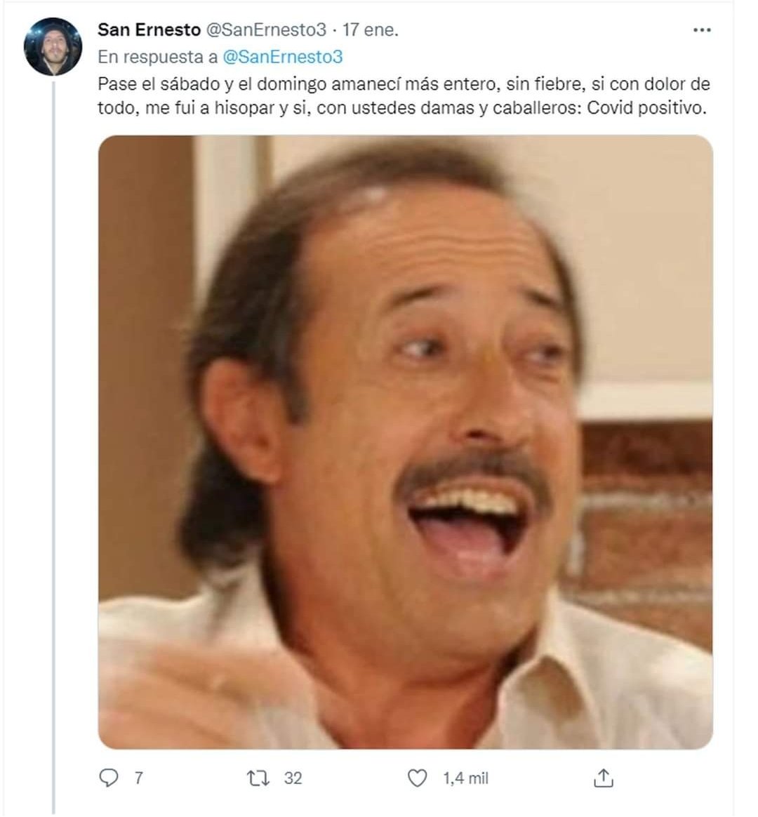 El usuario @SanErnesto3 de la red social Twitter contó a través de su cuenta personal la historia que vivió al contagiarse de Covid.