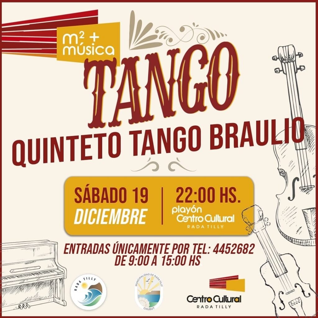 El próximo sábado 19 de Diciembre a las 22 hs en el playón del Centro Cultural Rada Tilly se presenta Quinteto Tango Braulio.