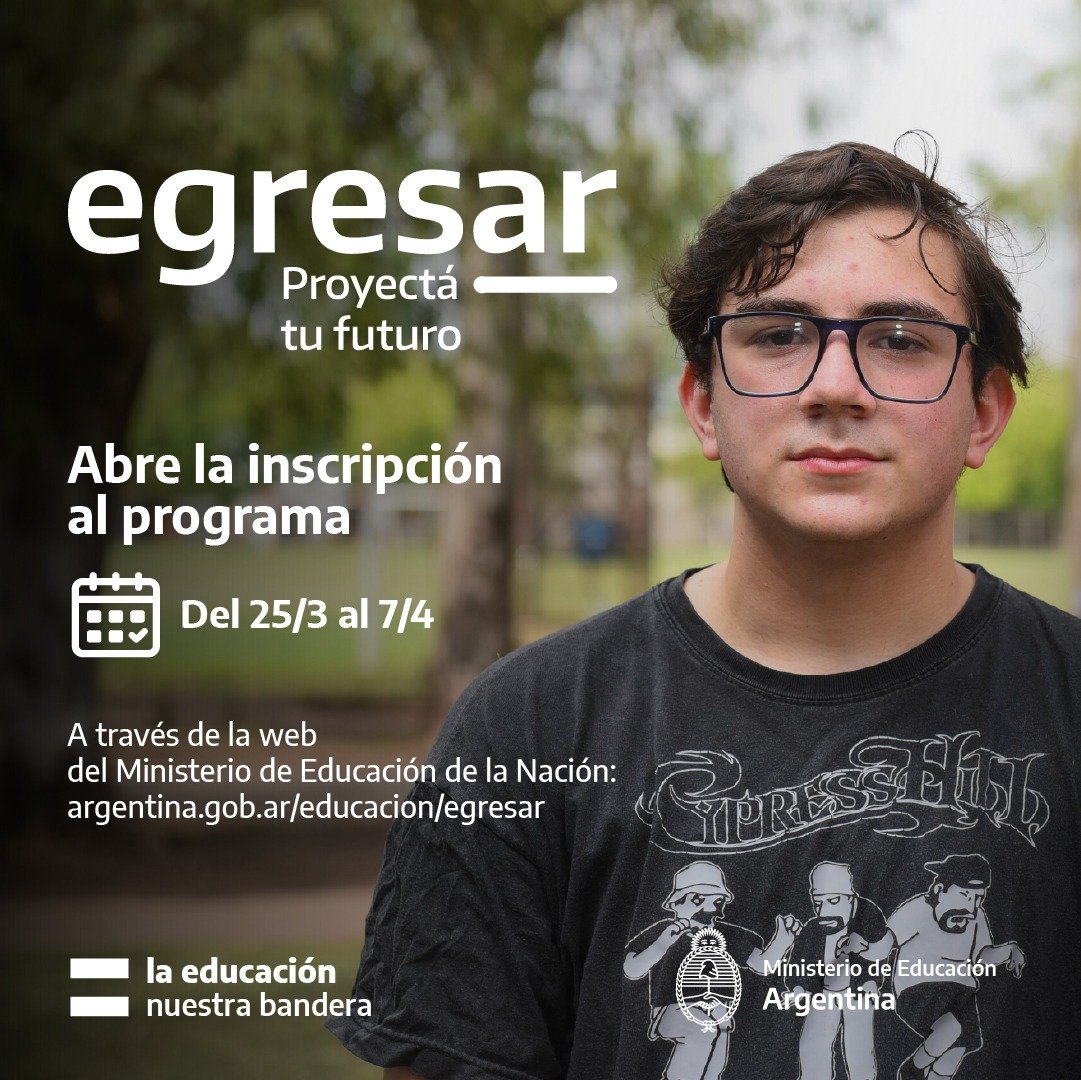 • La inscripción está abierta desde el pasado 25 de marzo y se mantendrá hasta el próximo 7 de abril. Los interesados podrán hacerlo mediante la web del Programa www.argentina.gob.ar/educacion/egresar.