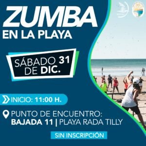 La primera actividad será la clase de yoga a las 10hs en la bajada 10 de la playa de Rada Tilly. Luego a las 11hs empezará la clase de zumba en la bajada 11.