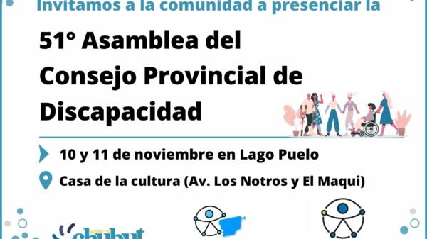 Chubut Salud realizará en Lago Puelo la 51° Asamblea del Consejo Provincial de Discapacidad Las actividades se desarrollarán los días jueves 10 y viernes 11 de noviembre en la Casa de la Cultura de dicha localidad cordillerana. Redacción RTN8 noviembre 2022